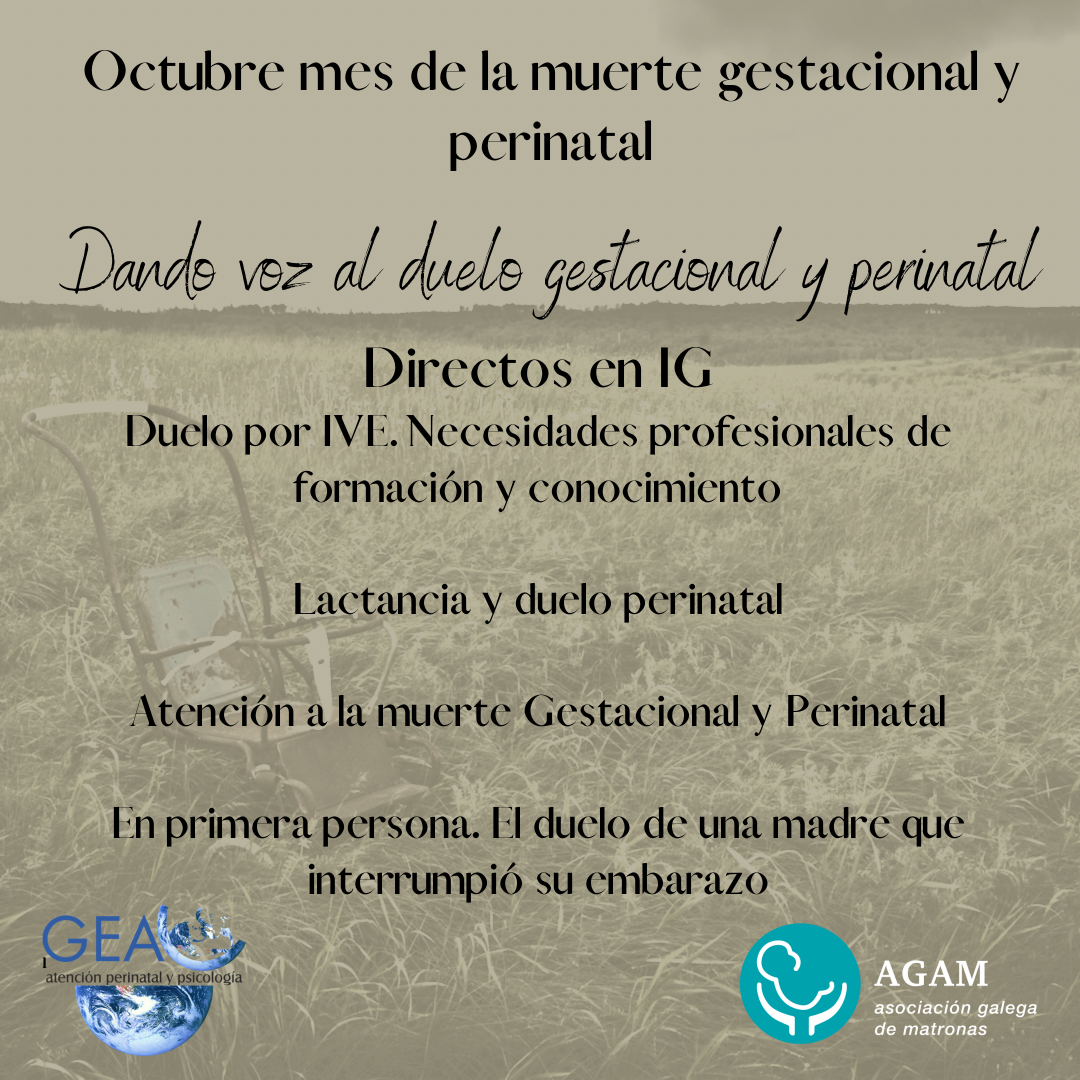 Es urgente escuchar a estas familias, dar vida a estos bebés… informar, formarnos, comprender y empatizar; como profesionales y como sociedad en general. Y por este motivo, Gea y la Asociación Galega de Matronas; volvemos a poner en marcha una serie de directos en IG, en el que participaremos profesionales y familias, a fin de dar voz al duelo Gestacional y Perinatal.